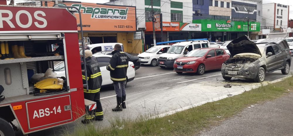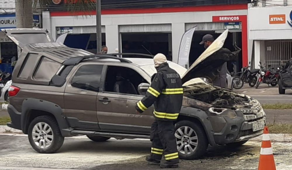 A manhã desta quarta (25) foi muito susto para o representante comercial Rodrigo Vieira proprietário do veículo picape Strada teve uma pane elétrica e pegou fogo na Avenida Presidente Dutra no centro de Feira de Santana, o fogo começou na parte do motor e ficou destruído causando um prejuízo de aproximadamente R$ 60 mil reais.