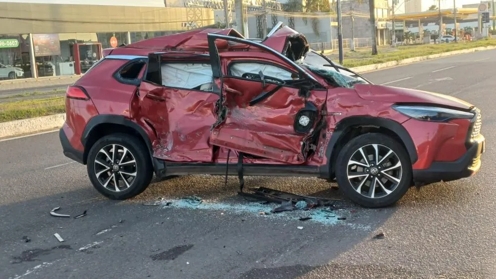 Um acidente foi registrado por volta das 4h da manhã desta terça-feira (25) no cruzamento das avenidas Maria Quitéria e Presidente Dutra, em Feira de Santana. A colisão envolveu um Toyota Corolla Cross e um ônibus do transporte intermunicipal.