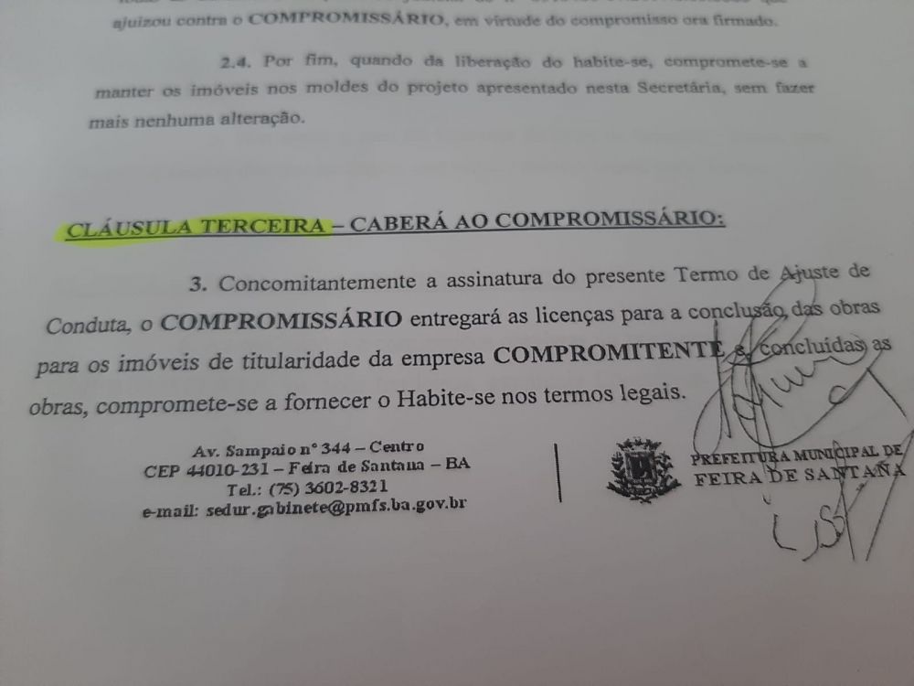 Um termo de ajustamento de conduta firmado entre a Prefeitura de Feira de Santana e o colégio Helyos garante a concessão imediata das licenças para a conclusão das obras das passarelas que interligam os prédios da unidade escolar, assim como a liberação do Habite-se. Esse é o objeto principal do TAC celebrado entre as duas partes.