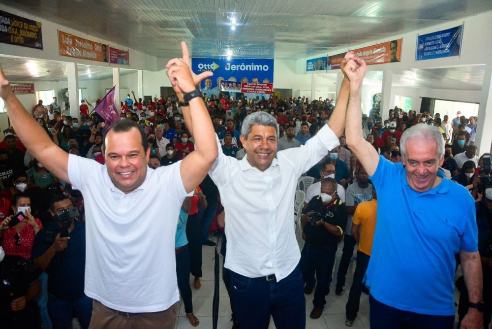 As pré-candidaturas do grupo apoiado por Jaques Wagner e Rui Costa foram lançadas em evento no dia 31 de março, em Salvador, com a presença do ex-presidente Lula. “As eleições deste ano têm dois lados bem definidos e os baianos sabem que somos do time da esperança e do trabalho, do time que vai caminhar junto com Lula para reconstruir o Brasil, colocar comida na mesa, garantir emprego e dignidade ao povo”, acrescentou Jerônimo. Ao falar sobre a dificuldade na sua infância, quando teve que mudar de um povoado na cidade de Aiquara para estudar, Jerônimo disse que as adversidades precisam ser transformadas em coragem para continuar trabalhando. “Essa situação tem que alimentar nossa indignação, não uma indignação ruim, perversa, ácida, mas uma indignação de querer fazer, de querer mudar, de não se conformar com as coisas. Essa indignação em minha vida foi transformada em esperança, em trabalho, em fé e é com isso que eu quero com o povo da Bahia dirigir nosso estado, puxando à frente a bandeira da esperança, do trabalho e da unidade.
