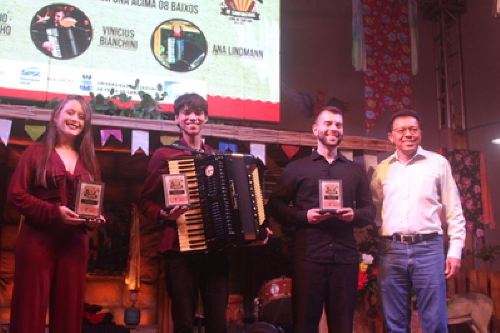 A programação ainda contou com uma homenagem a Baio do Acordeon, artista com mais de 70 anos de carreira. Ele se apresentou no evento com a banda “Os bambas do Nordeste”, da qual faz parte. O sanfoneiro, que recebeu o troféu da servidora aposentada da Uefs, Goreti Figueiredo, foi o primeiro campeão do Festival de Sanfoneiros. O evento é promovido pela Uefs, através do Cuca, e conta com o apoio do Serviço Social do Comércio (Sesc).