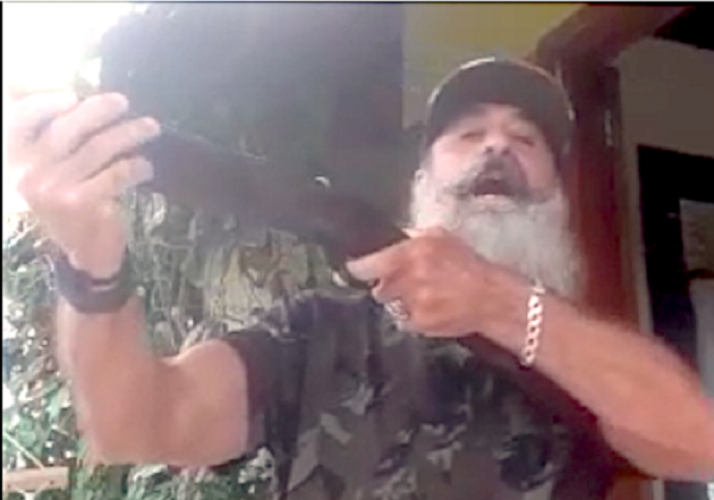 “Tenho 10 hectares de terra, não está produtiva. Gostaria muito que tu viesses invadir, Lula, como tu falasse que ia invadir a casa dos nossos deputados, para incomodar. Está aqui pra você, está vendo aqui?”, afirma, exibindo a arma.